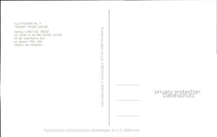 Flugzeuge Zivil Air Mar Freight Systems Curtiss C-46F-1-C0 N67977 c/n 22533 postalisch nicht gelaufen Erhaltung siehe scans
