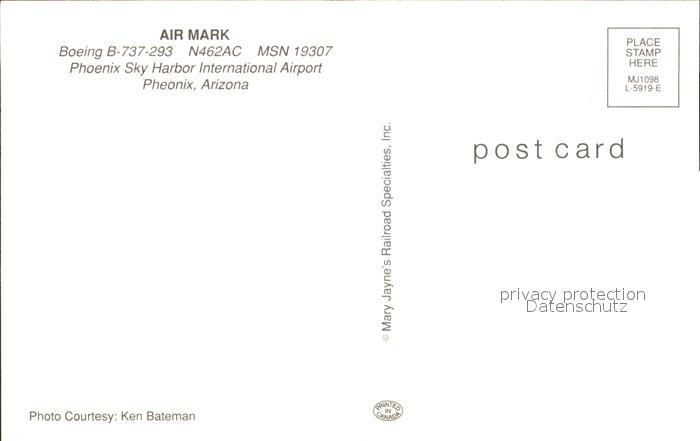 Flugzeuge Zivil Air Mark Boeing B-737-293 N462AC MSN 19307 postalisch nicht gelaufen Erhaltung siehe scans
