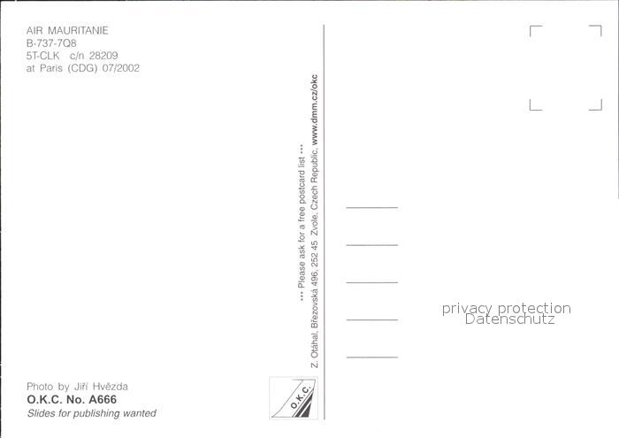 Flugzeuge Zivil Air Mauritanie B-737-7Q8 5T-CLK c/n 28209 postalisch nicht gelaufen Erhaltung siehe scans