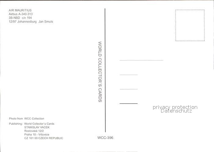 Flugzeuge Zivil Air Mauritius Airbus 340-313 3B-NBD c/n 194 postalisch nicht gelaufen Erhaltung siehe scans