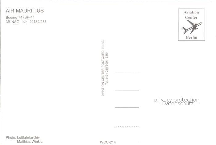 Flugzeuge Zivil Air Mauritius Boeing 747SP-44 3B-NAG c/n 21134/288 postalisch nicht gelaufen Erhaltung siehe scans