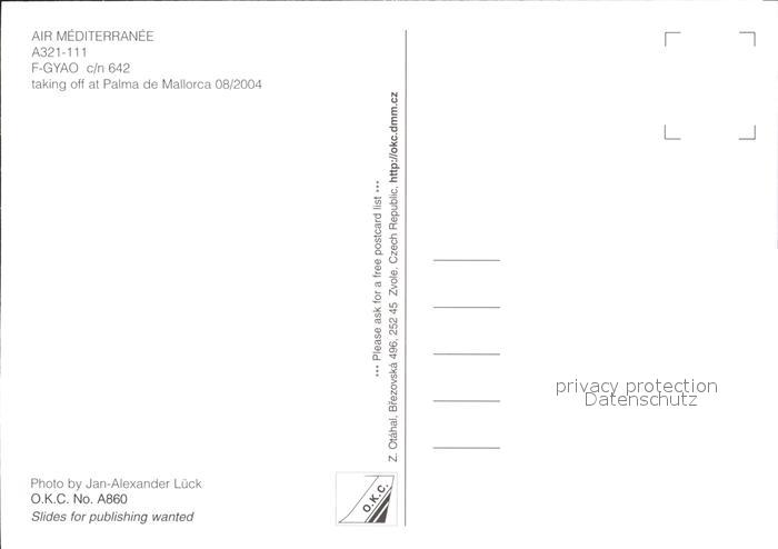 Flugzeuge Zivil Air Mediterranee A321-111 F-GYAO c/n 642 postalisch nicht gelaufen Erhaltung siehe scans
