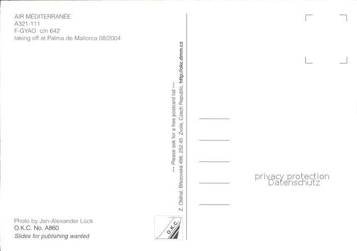 Flugzeuge Zivil Air Mediterranee A321-111 F-GYAO c/n 642 postalisch nicht gelaufen Erhaltung siehe scans
