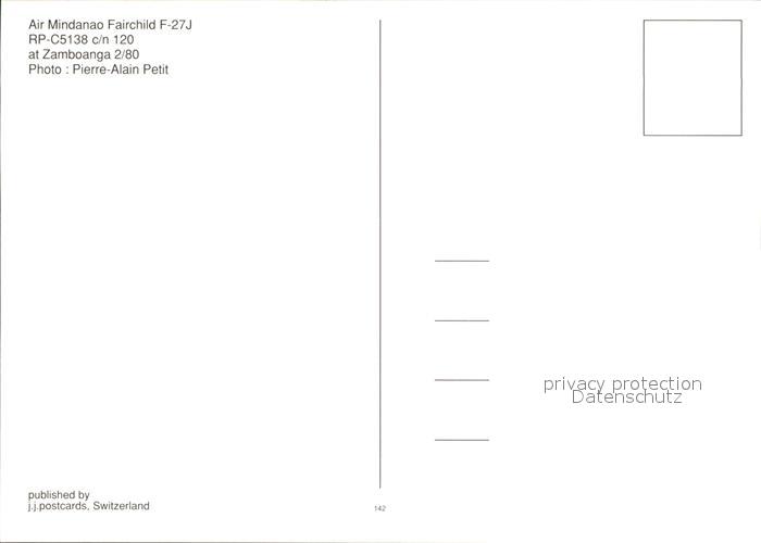 Flugzeuge Zivil Air Mindanao Fairchild F-27J RP-C5138c/n 120 postalisch nicht gelaufen Erhaltung siehe scans