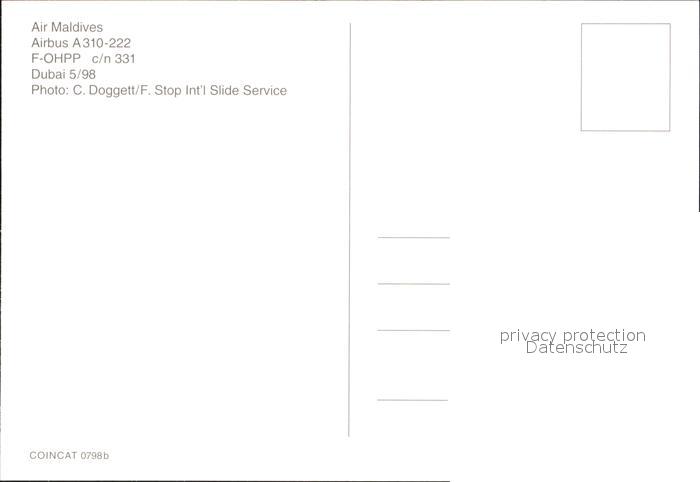 Flugzeuge zivil Air Mldives Airbus A310-222 F-OHPP postalisch nicht gelaufen Erhaltung siehe scans