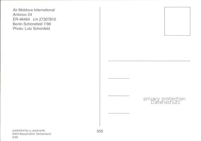 Flugzeuge Zivil Air Moldavia International Antonov 24 ER-46464 c/n 27307810 postalisch nicht gelaufen Erhaltung siehe scans
