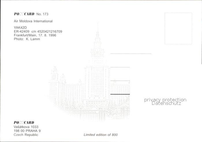 Flugzeuge Zivil air Moldova International YAK-42D ER-42409 Frankfurt am Main postalisch nicht gelaufen Erhaltung siehe scans