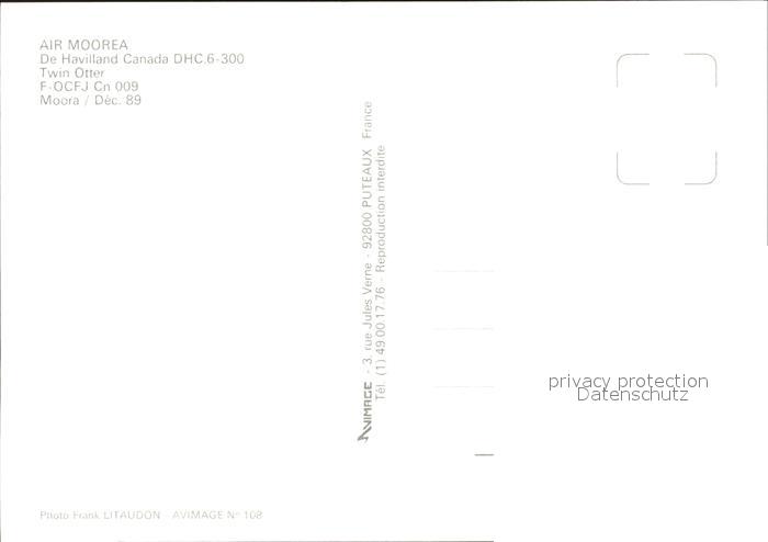 Flugzeuge Zivil Air Moorea De Havilland Canada DHC.6-300 Twin Otter F-OCFJ postalisch nicht gelaufen Erhaltung siehe scans