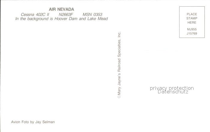 Flugzeuge Zivil Air Nevada Cessna 402C II N2663F MSN 0353 Hoover Dam postalisch nicht gelaufen Erhaltung siehe scans