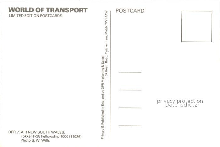 Flugzeuge Zivil Air New South Wales Fokker F-28 Fellowship 1000 11026 postalisch nicht gelaufen Erhaltung siehe scans