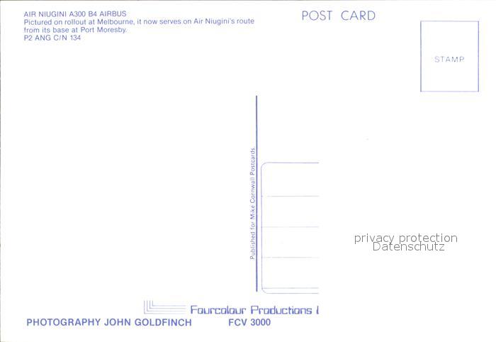 Flugzeuge Zivil Air Niugini A300 B4 Airbus P2-ANG C/N 134 postalisch nicht gelaufen Erhaltung siehe scans
