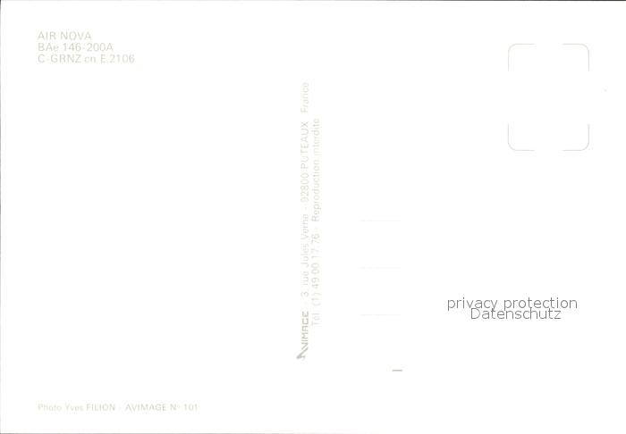 Flugzeuge Zivil Air Nova BAe 146-200A C-GRNZ cn E.2106 postalisch nicht gelaufen Erhaltung siehe scans