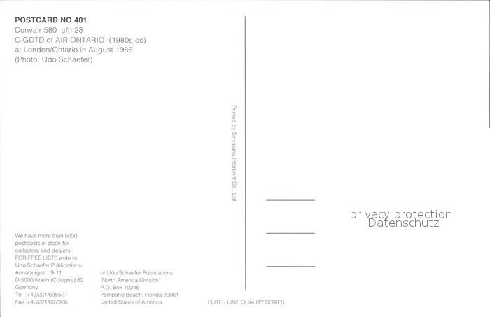 Flugzeuge Zivil Air Ontario Convair 580 c/n 28 C-GDTD postalisch nicht gelaufen Erhaltung siehe scans