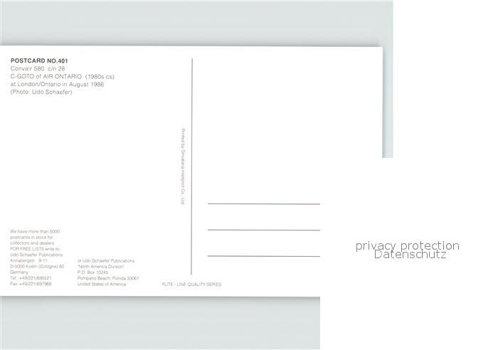 Flugzeuge Zivil Air Ontario Convair 580 c/n 28 C-GDTD postalisch nicht gelaufen Erhaltung siehe scans