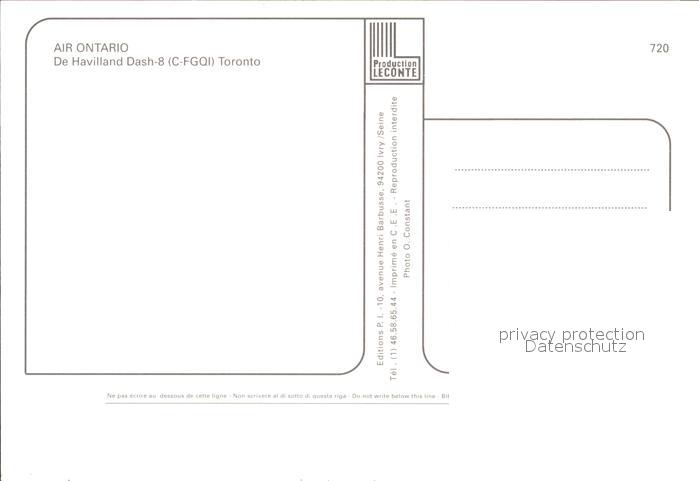 Flugzeuge Zivil Air Ontario De Havilland Dash-8 C-FGQI postalisch nicht gelaufen Erhaltung siehe scans