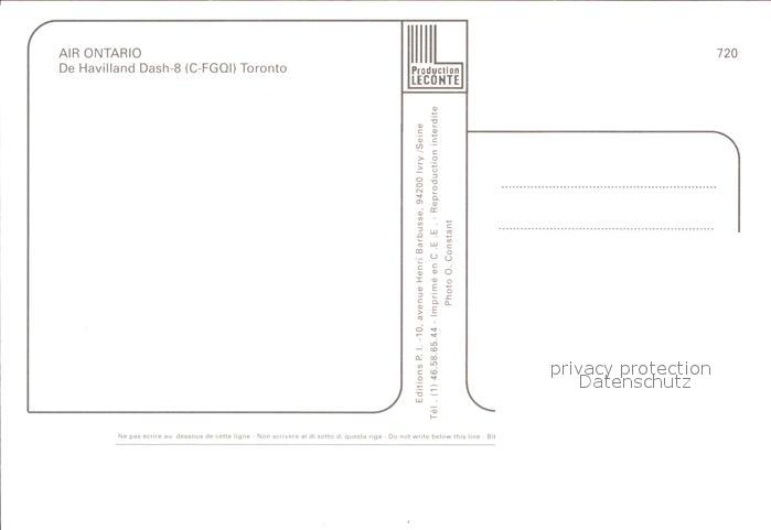 Flugzeuge Zivil Air Ontario DeHavilland Dash 8 C-FGQI postalisch nicht gelaufen Erhaltung siehe scans
