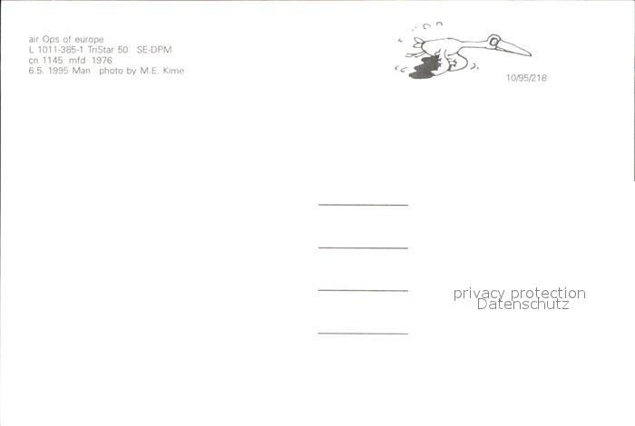 Flugzeuge Zivil Air Ops L1011-385-1 TriStar 50 SE-DPM cn 1145 postalisch nicht gelaufen Erhaltung siehe scans
