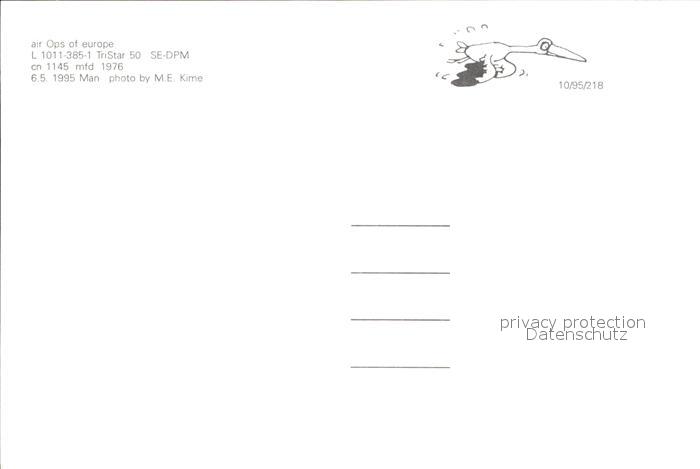 Flugzeuge Zivil Air Ops of Europe L1011-385-1 TriStar 50 SE-DPM c/n 1145 postalisch nicht gelaufen Erhaltung siehe scans