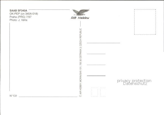 72921071 Flugzeuge Zivil Air Ostrava Saab SF340A OK-PEP cn 340A-018 KatCode 22120000001300