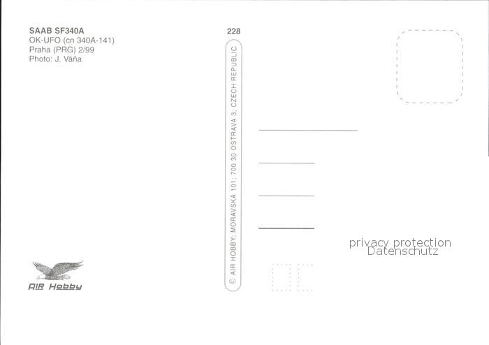Flugzeuge Zivil Air Ostrava Saab SF340A OK-UFO cn 340A-141 Skoda postalisch nicht gelaufen Erhaltung siehe scans