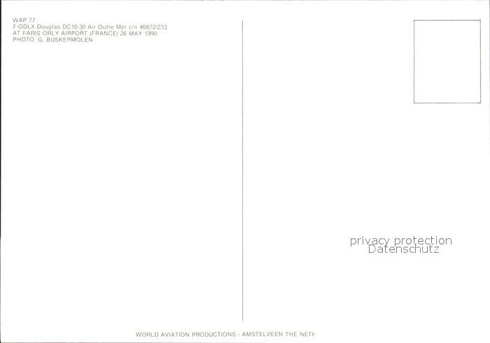 Flugzeuge Zivil Air Outre Mer Douglas DC10-30 F-ODLX c/n 46872/233 postalisch nicht gelaufen Erhaltung siehe scans