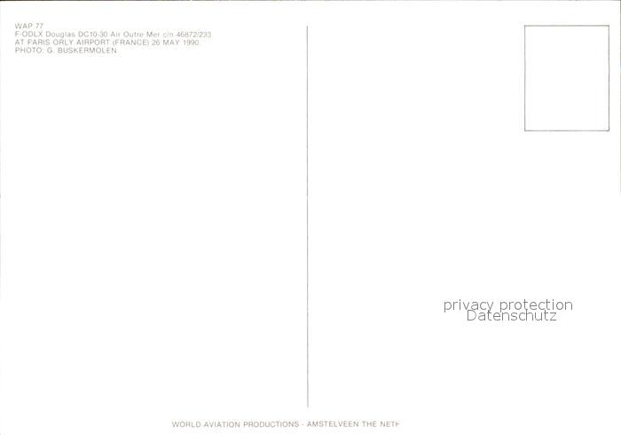 Flugzeuge Zivil Air Outre Mer F-ODLX Douglas DC10-30 c/n 46872/233 postalisch nicht gelaufen Erhaltung siehe scans
