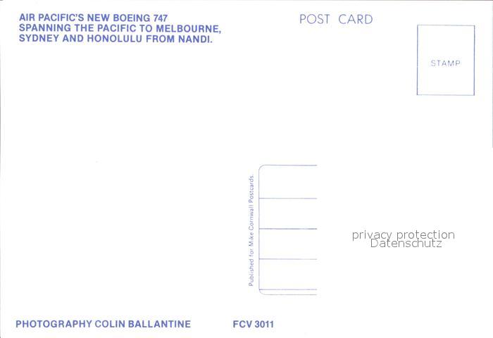 Flugzeuge Zivil Air Pacific Boeing 747 VH-EBK postalisch nicht gelaufen Erhaltung siehe scans