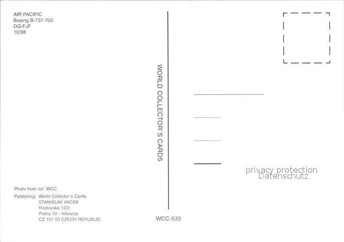 Flugzeuge zivil Air Pacific Boeing B-737-700 DQ-FJF postalisch nicht gelaufen Erhaltung siehe scans