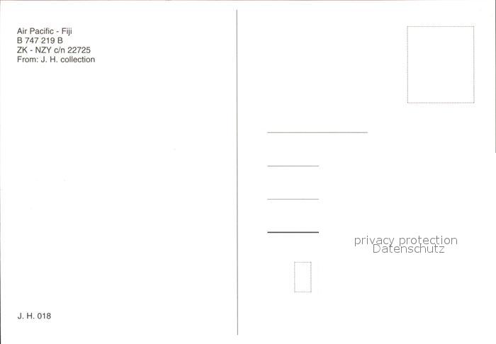 Flugzeuge Zivil Air Pacific Fiji B 747 219 B ZK-NZY c/n 22725 postalisch nicht gelaufen Erhaltung siehe scans