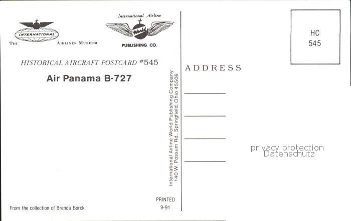 Flugzeuge Zivil Air Panama B-727 N55AJ postalisch nicht gelaufen Erhaltung siehe scans