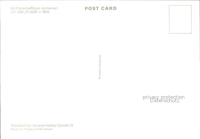 Flugzeuge Zivil Air Panama Royal Jordanian 727-200 JY-ADR postalisch nicht gelaufen Erhaltung siehe scans