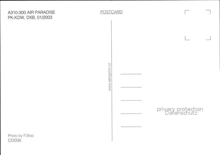 Flugzeuge Zivil Air Paradise A310-300 PK-KDW postalisch nicht gelaufen Erhaltung siehe scans