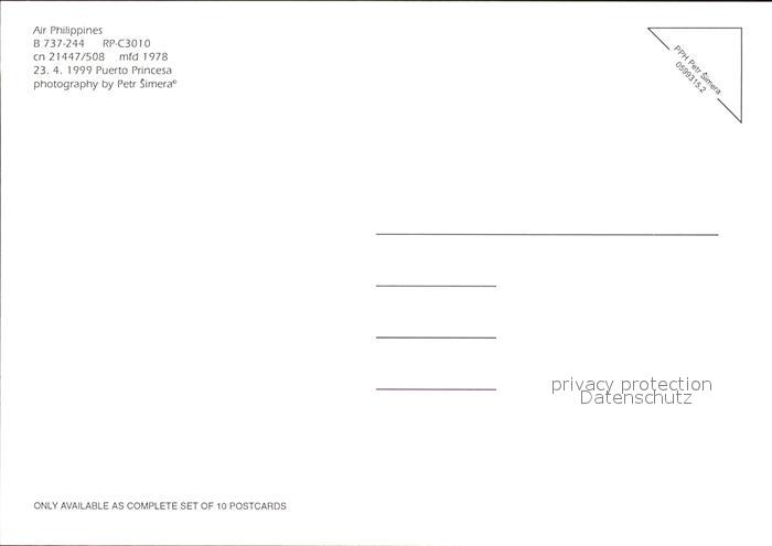 Flugzeuge Zivil Air Philippines B 737-244 RP-C3010 cn 21447/508 postalisch nicht gelaufen Erhaltung siehe scans