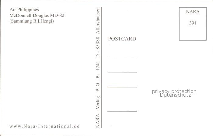 Flugzeuge Zivil Air Philippines McDonnell Douglas MD-82 B-88899 postalisch nicht gelaufen Erhaltung siehe scans