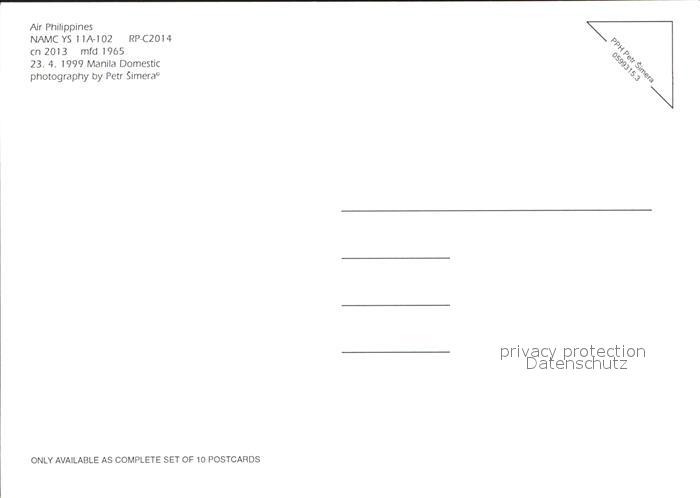 Flugzeuge Zivil Air Philippines NAMC YS 11A-102 RP-C2014 cn 2013 postalisch nicht gelaufen Erhaltung siehe scans