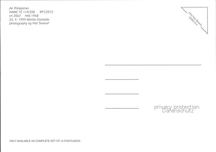 Flugzeuge Zivil Air Philippines NAMC YS 11A-208 RP-C2015 cn 2067 postalisch nicht gelaufen Erhaltung siehe scans