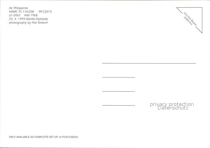 Flugzeuge Zivil Air Philippines NAMC YS 11A-208 RP-C2015 cn 2067 postalisch nicht gelaufen Erhaltung siehe scans