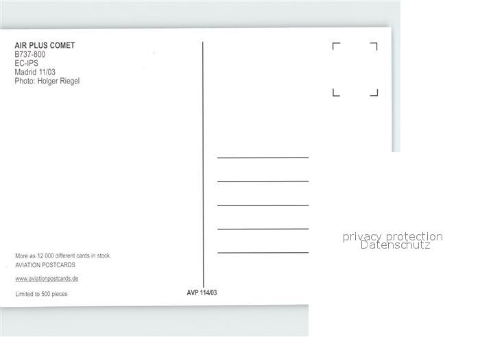 Flugzeuge Zivil Air Plus Comet B-737-800 EC-IPS postalisch nicht gelaufen Erhaltung siehe scans