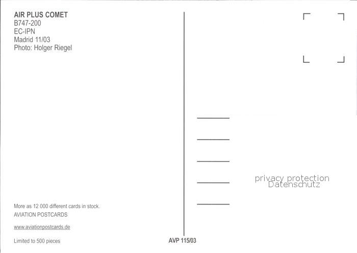 Flugzeuge Zivil AIR PLUS COMET B747-200 EC-IPN Madrid postalisch nicht gelaufen Erhaltung siehe scans
