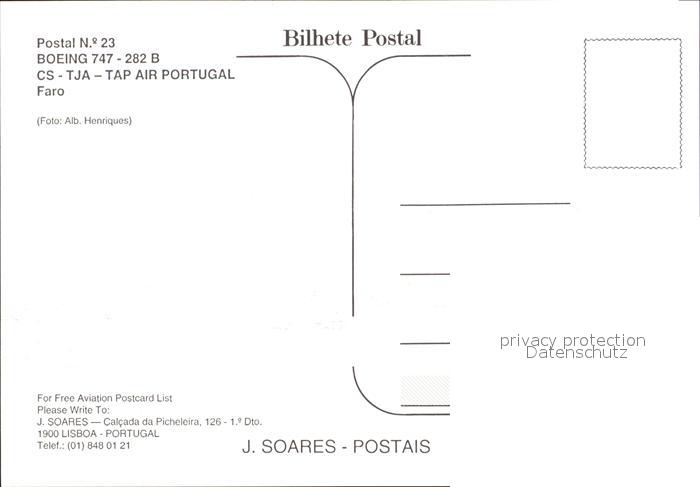 Flugzeuge Zivil Air Portugal Boeing 747-282 B CS-TJA postalisch nicht gelaufen Erhaltung siehe scans