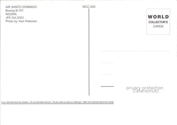 Flugzeuge Zivil Air Santo Domingo Boeing B-757 N522NA postalisch nicht gelaufen Erhaltung siehe scans