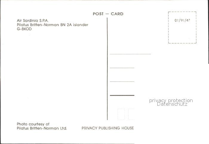 Flugzeuge Zivil Air Sardinia S.P.A Pilatus Britten-Norman BN 2A Islander G-BKOD postalisch nicht gelaufen Erhaltung siehe scans