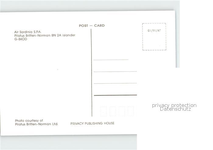 Flugzeuge Zivil Air Sardinia SPA Pilatus Britten-Norman BN-2A Islander G-BKOD postalisch nicht gelaufen Erhaltung siehe scans