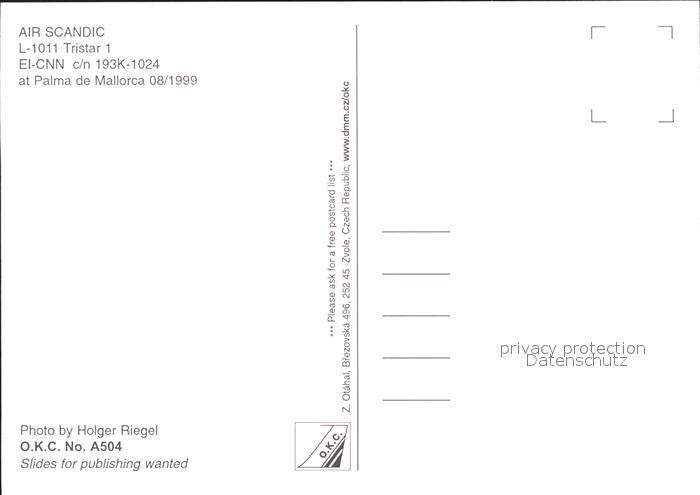 Flugzeuge Zivil Air Scandic L-1011 Tristar 1 EI-CNN c/n 193K-1024 postalisch nicht gelaufen Erhaltung siehe scans