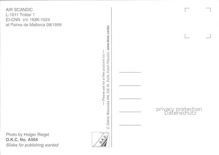 Flugzeuge zivil Air Scandic L-1011 Tristar 1 EI-CNN c/n 193K-1024 Palma de Mallorca postalisch nicht gelaufen Erhaltung siehe scans