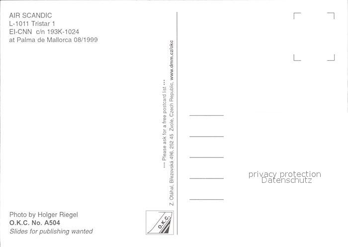 Flugzeuge Zivil Air Scandic L-1011 Tristar 1 EI-CNN c/n 193K-1024 postalisch nicht gelaufen Erhaltung siehe scans
