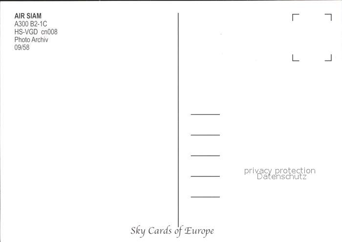 Flugzeuge Zivil Air Siam A300 B2-1C HS-VGD cn008 postalisch nicht gelaufen Erhaltung siehe scans