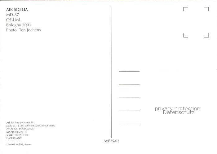 Flugzeuge Zivil Air Sicilia MD-87 OE-LML postalisch nicht gelaufen Erhaltung siehe scans