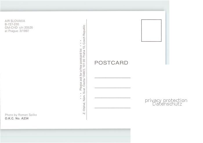 Flugzeuge Zivil Air Slovakia B-727-230 OM-CHD c/n 20526 postalisch nicht gelaufen Erhaltung siehe scans
