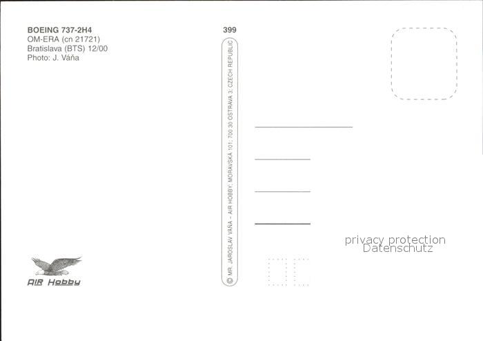 Flugzeuge Zivil Air Slovakia Boeing 737-2H4 OM-ERA cn 21721 postalisch nicht gelaufen Erhaltung siehe scans